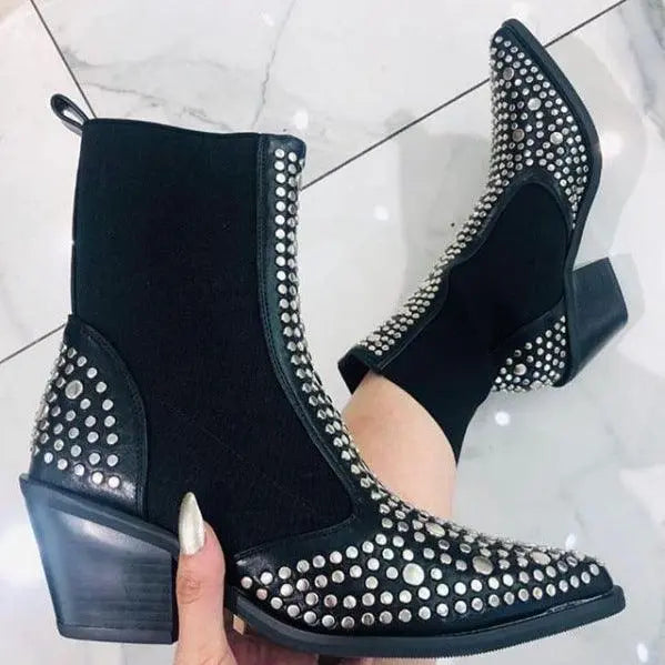 Women's denim rivets boots