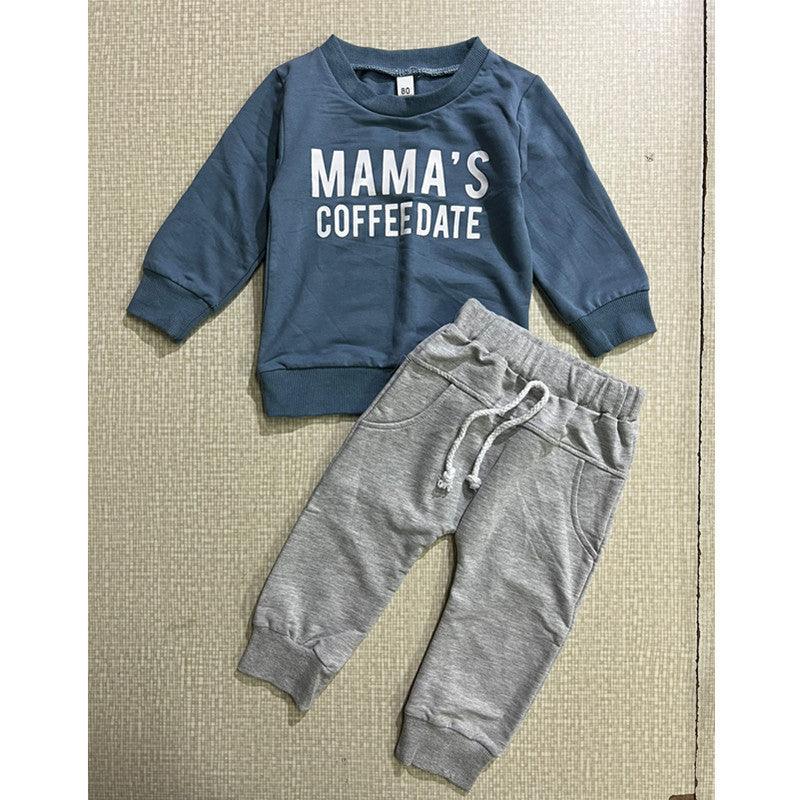 Boys' Letter Floral Print Long Sleeve Pullover Trousers Infant Two-piece Set