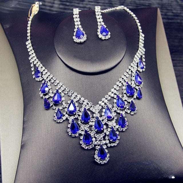 Bridal Crystal Full Diamond Necklace Earrings Two-piece Set