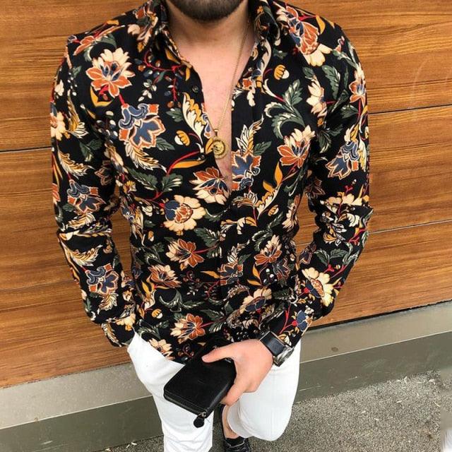 Casual Loose Turn-down Collar Mens Shirts Vintage Printing Button Short Sleeve Tops 2021 Summer Men Clothing Fashion Streetwear