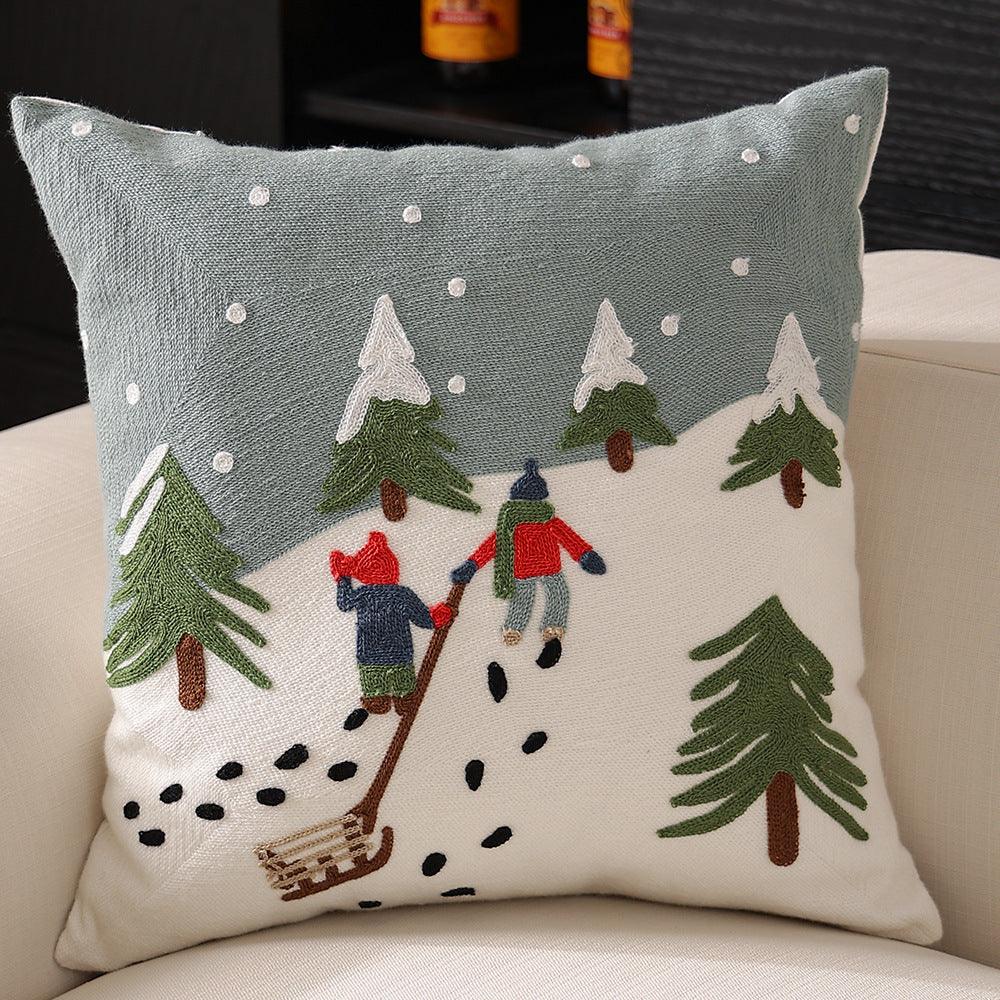 Product information:Pattern: Christmas Color: Snow Mountain travel canvas embroidery pillow case, SKSHU gift box canvas embroidery pillow case, reindeer Teddy...