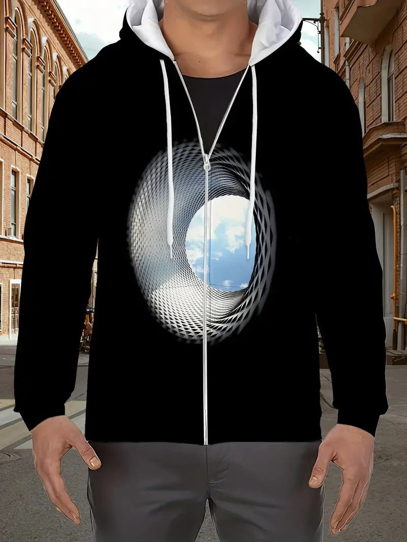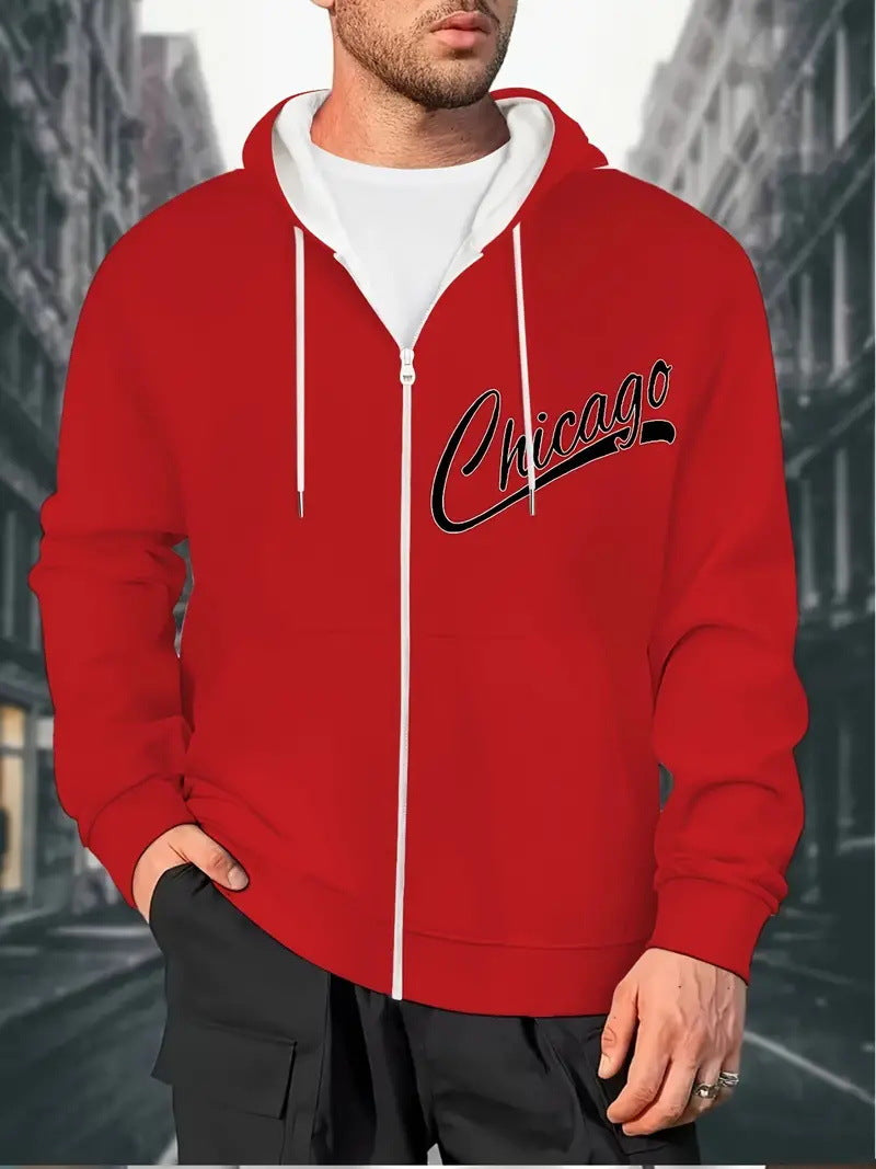 Commuter Windproof Warm Hoodie With Drawstrings Long Sleeve Cardigan