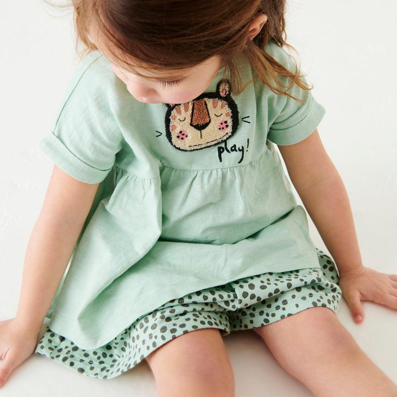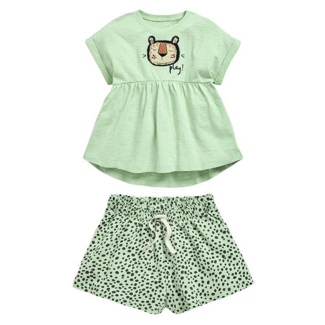Completo da bambina, composto da t-shirt a manica corta e shorts. Read more
