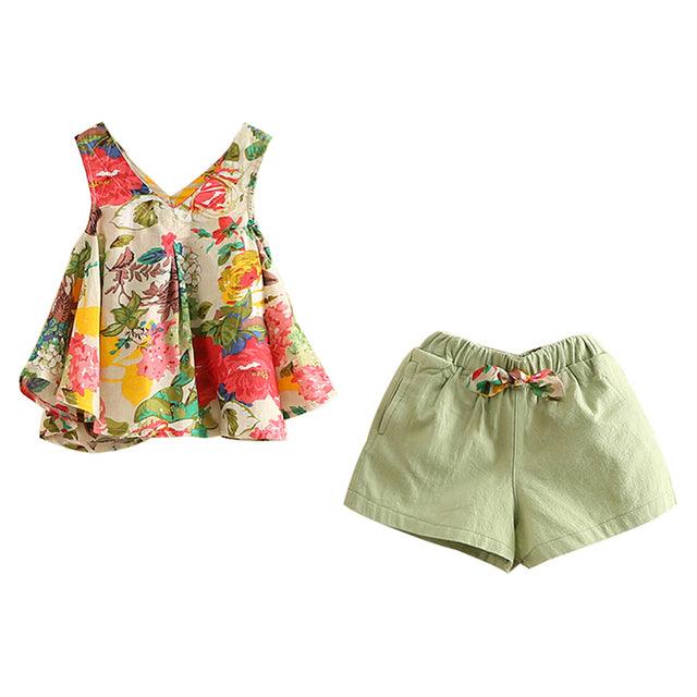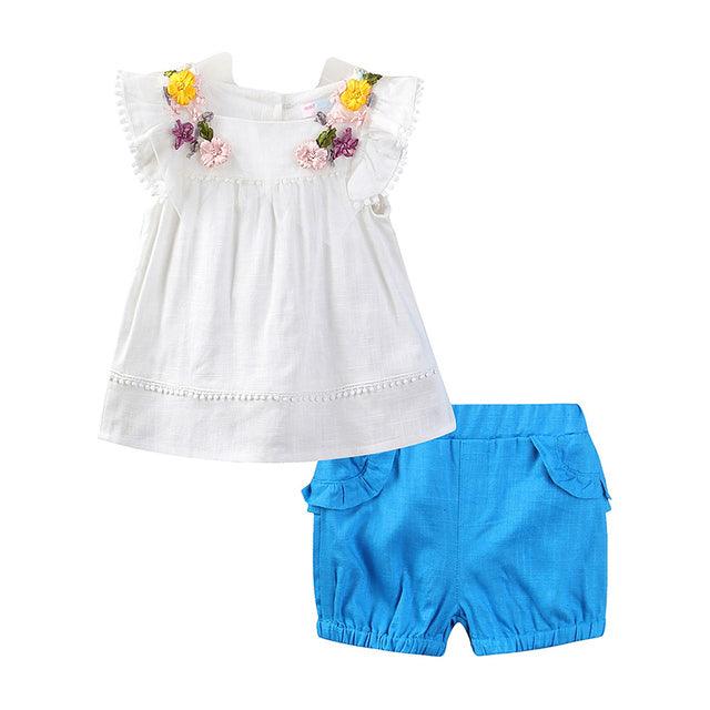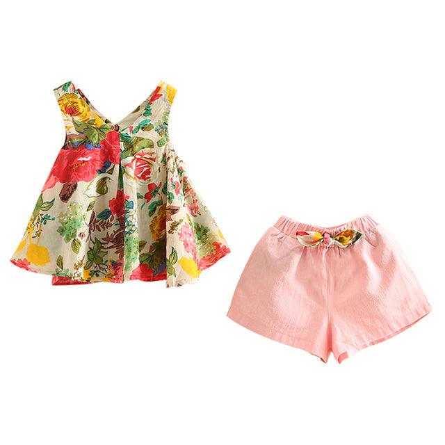 Completo da bambina, 100% cotone, composto da shorts e da t-shirt smanicata, in diverse varianti di colore.