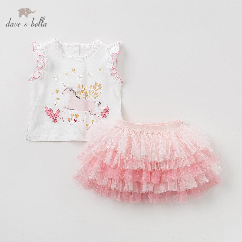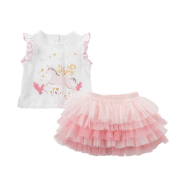 Completo da bambina, composto da t-shirt smanicata e gonna con tulle.