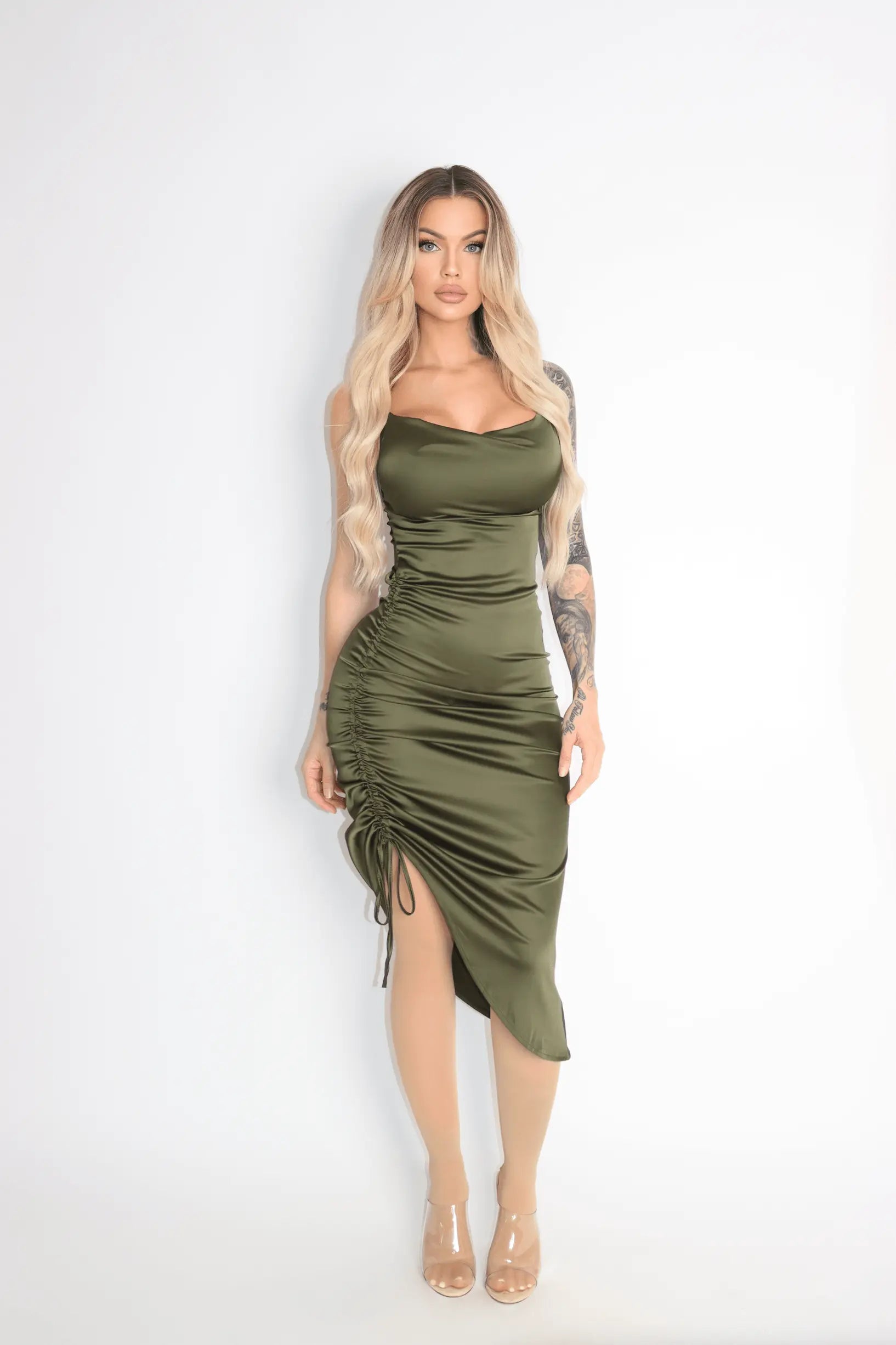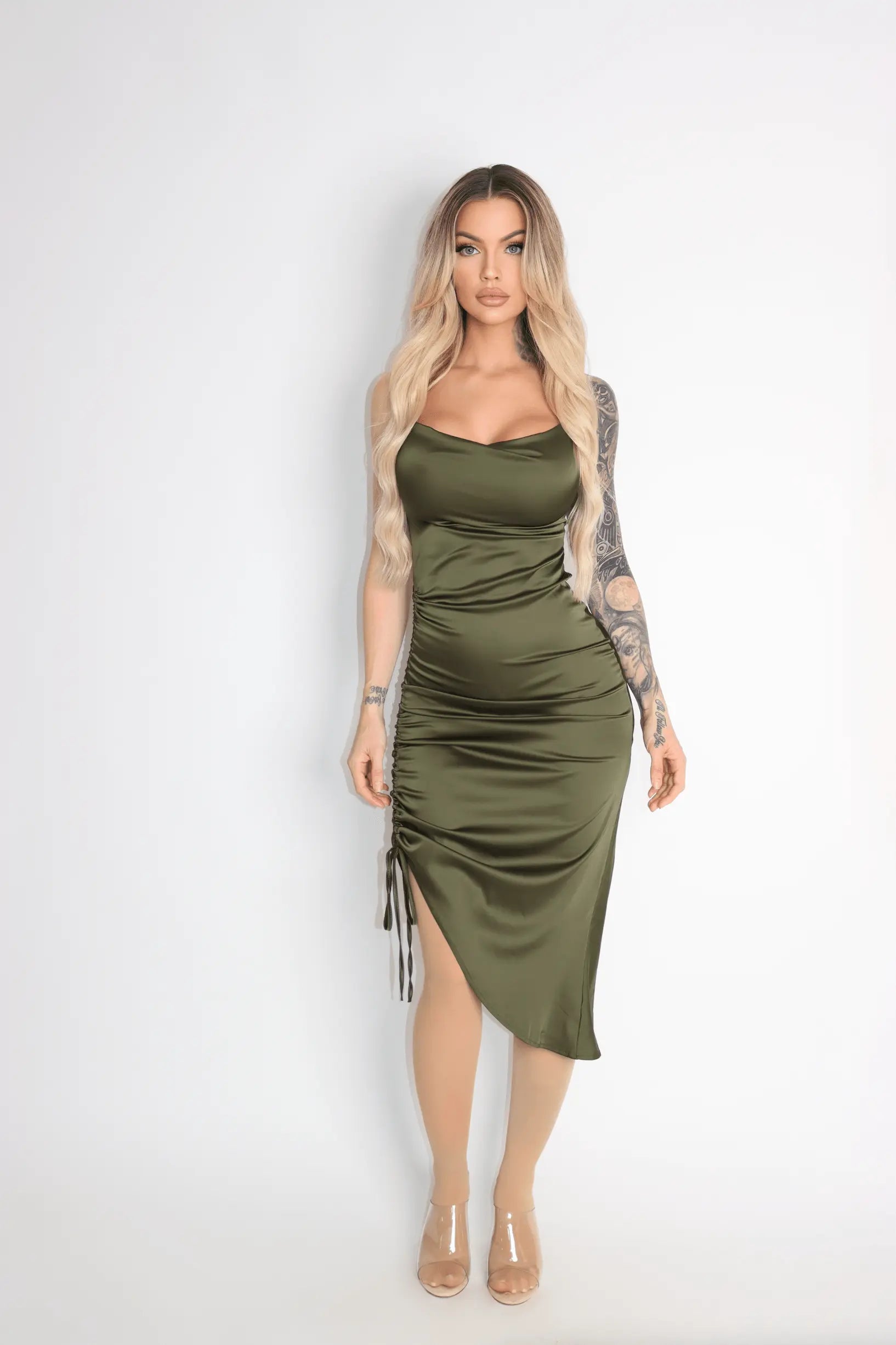 Ruched Satin Dress Drawstring Spaghetti Straps