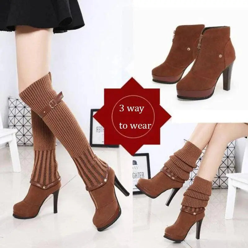 COVOYYAR 2021 Knitting Knee High Boots Fashion Long Thigh High Boots Women High Heels Autumn Winter Women Shoes Dual Use WBS2041