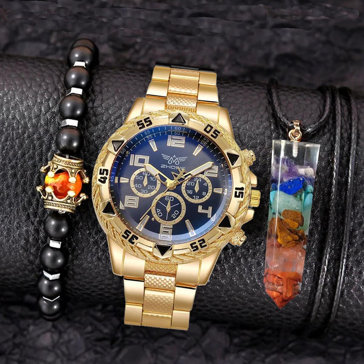 Creative Large Dial Three-eye Steel Belt Quartz Watch