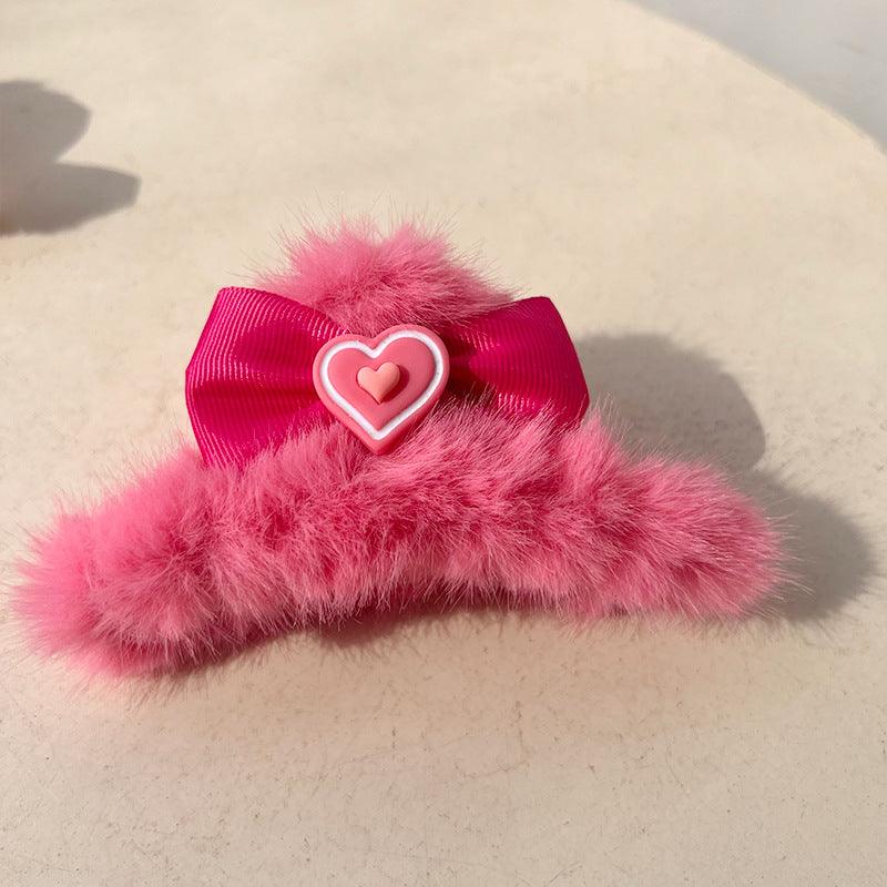 Cute Plush Shark Barrettes with Loving Heart Bowknot Back Head Updo