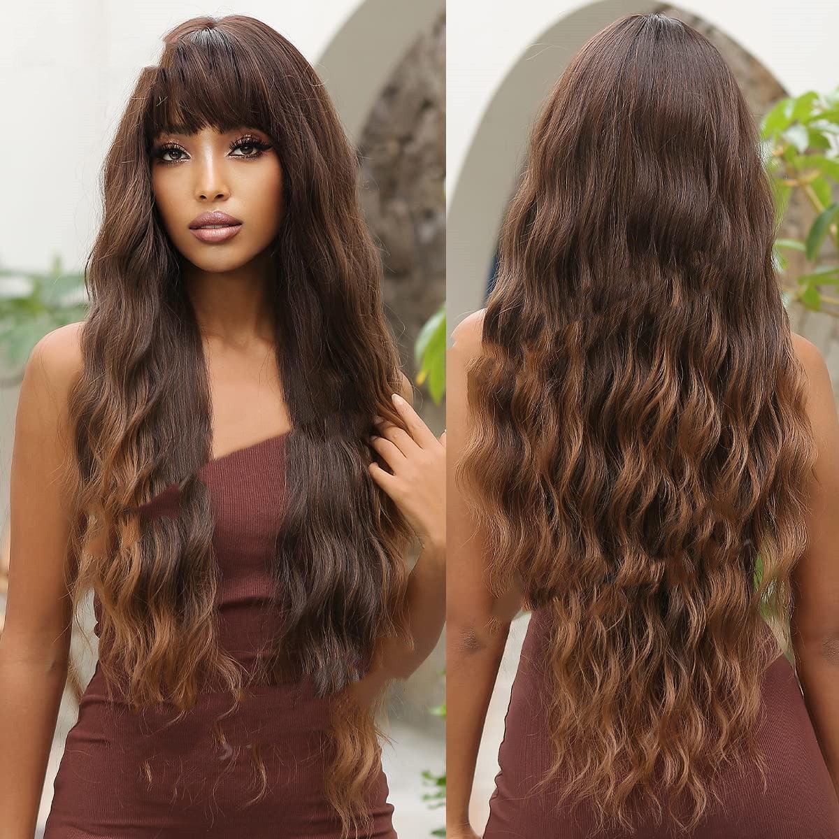 Dark Brown Dyed Light Brown Bangs Long Curly Hair Wigs Mechanism Headgear