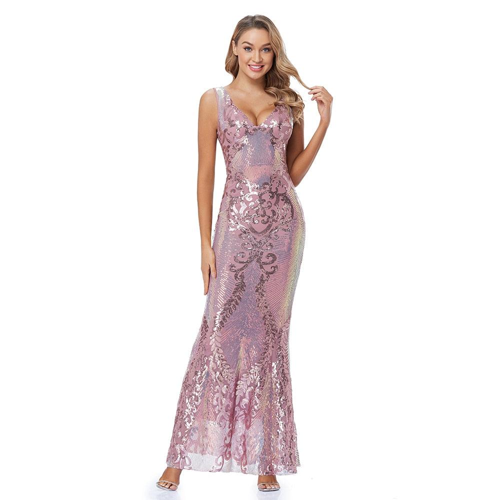 Dark Green V Neck V Back Sleeveless Formal Dress Sequins Women Evening Floor Length Prom dresses