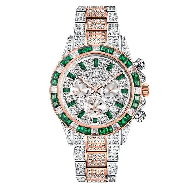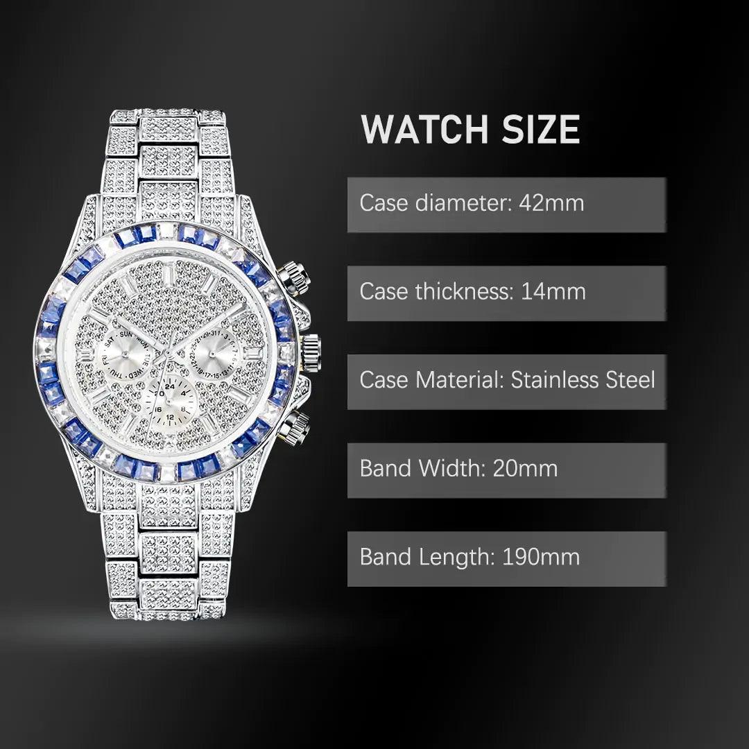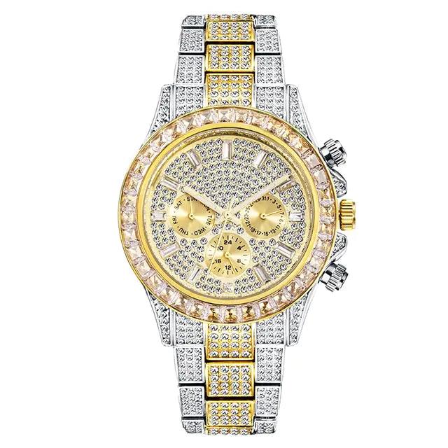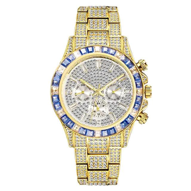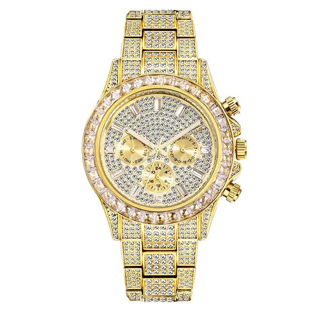 Introducing the Diamond Calendar Watch, a luxurious and sophisticated timepiece that is perfect for any occasion. This watch features a quartz movement for accurate timekeeping, as well as a complete calendar and 30M water resistance, making it ideal for everyday wear. The 18K gold nano vacuum plating gives the watch a beautiful, long-lasting gold finish that will not fade. This makes the perfect gift for Birthdays, Christmas, anniversaries, or any other special occasion.