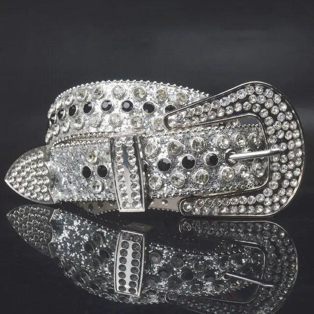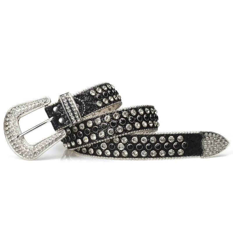 Make a bold and unique statement with this luxe Diamond Studded Belt – perfect for any occasion. Crafted from high-quality metal, it features diamond rhinestones set within a raised western-inspired design. This belt is sure to elevate your wardrobe and add an eye-catching touch of glamour to an ensemble. Whether you're looking to add a touch of edginess to a more formal look or want to change up your casual style, this belt will offer the perfect balance between luxury punk and timeless cool. Whether you are accessorizing with jeans or a dress coat, this chic Diamond Studded Belt with its glittery stones will undoubtedly make you stand out in any crowd. Make it yours today for the ultimate addition to your wardrobe!