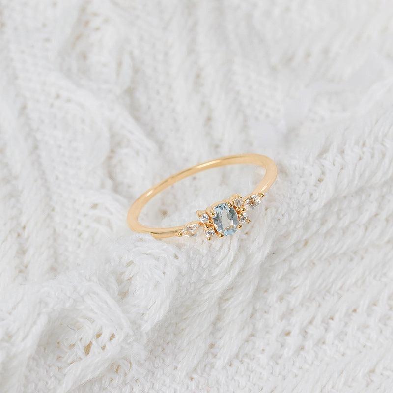 Dunli jewelry ins style new S925 sterling silver female ring small fresh sky blue topaz sweet ring wholesale