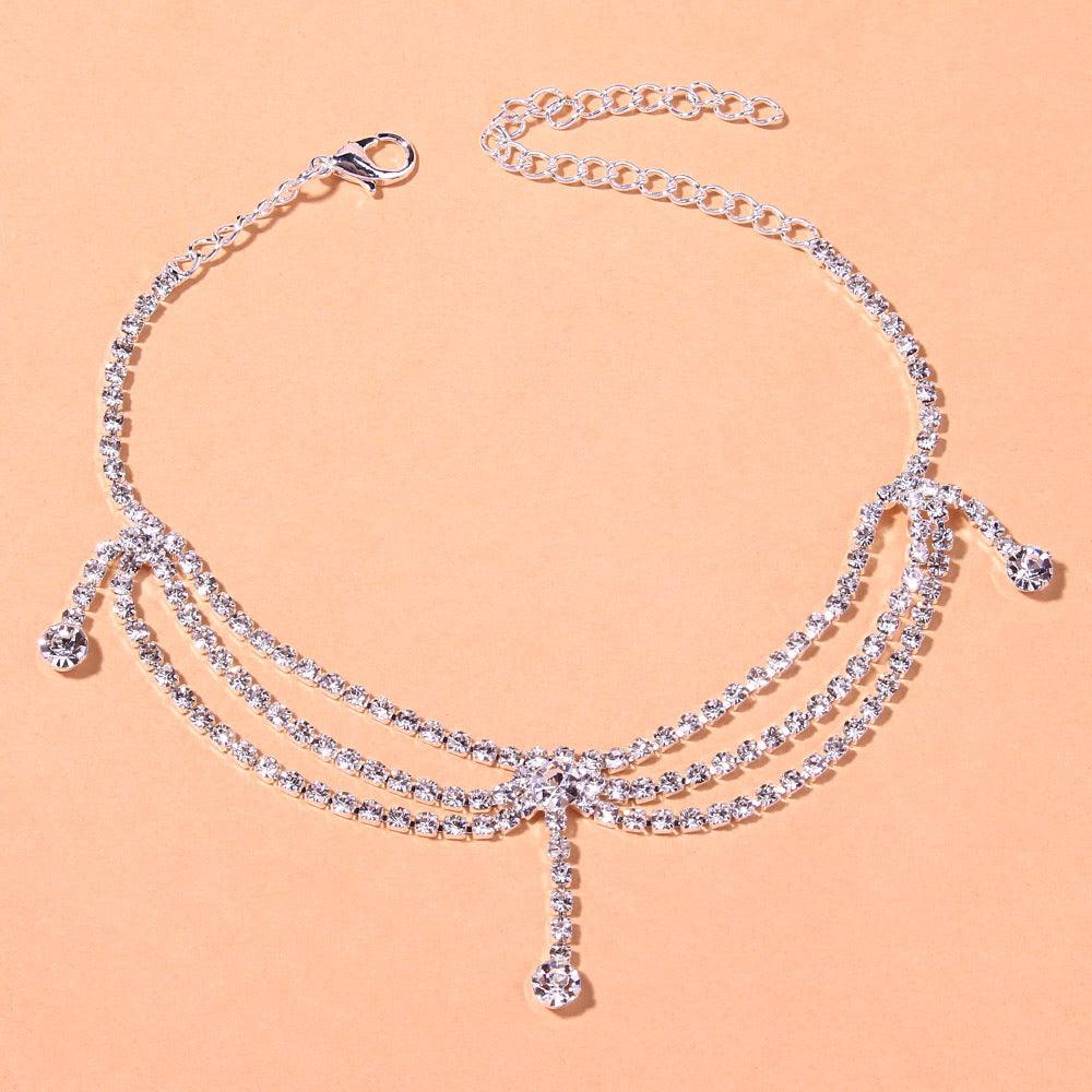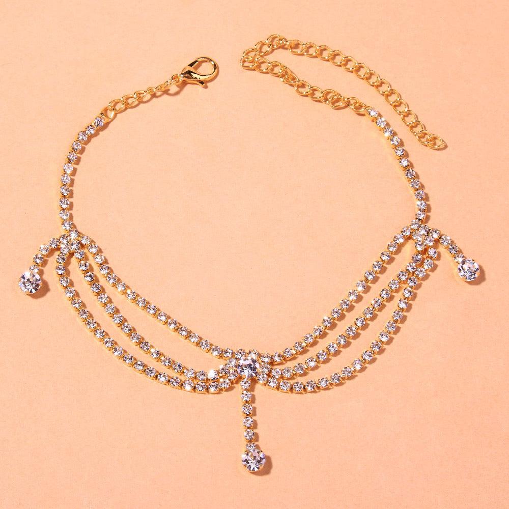 European & American Multi-layer Anklet with Flowing Rhinestones