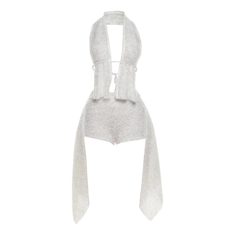 European And American Sexy Hot Girl Low Cut Sleeveless Halter Backless Shorts Suit