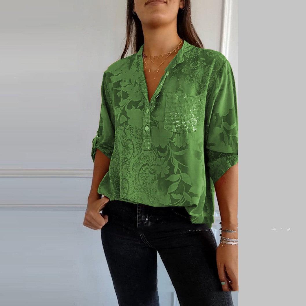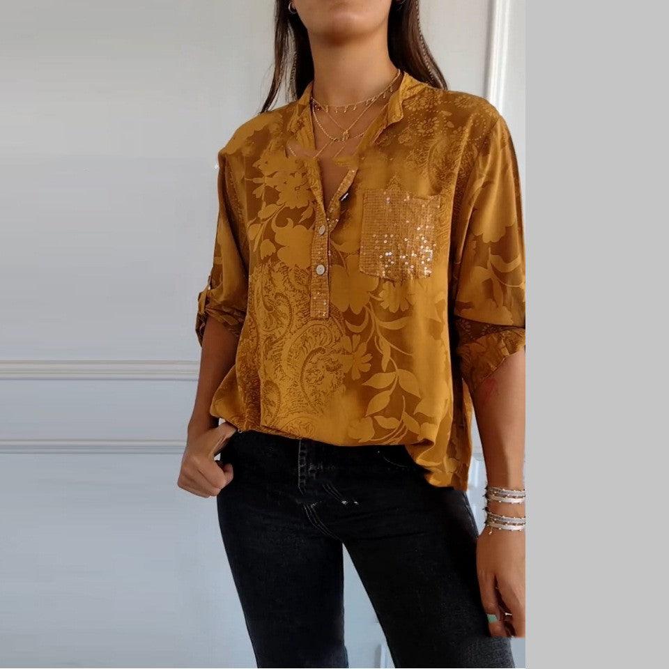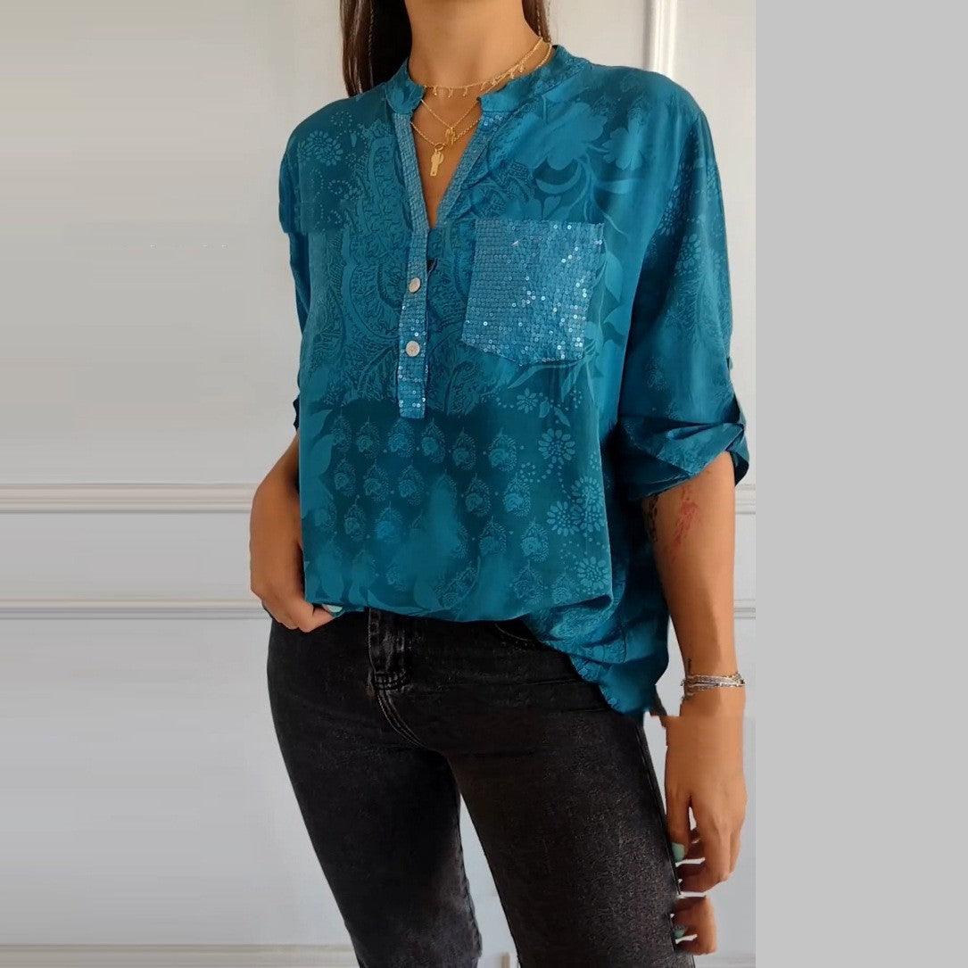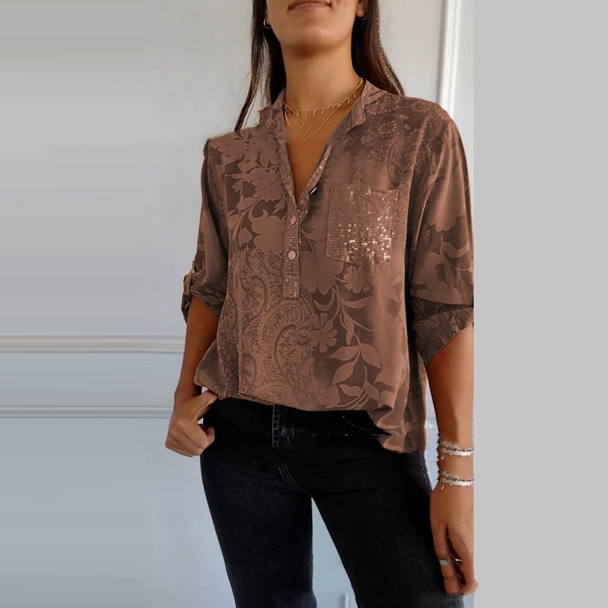 European And American Women's Clothing Fashion Elegant Printed Shirt Top