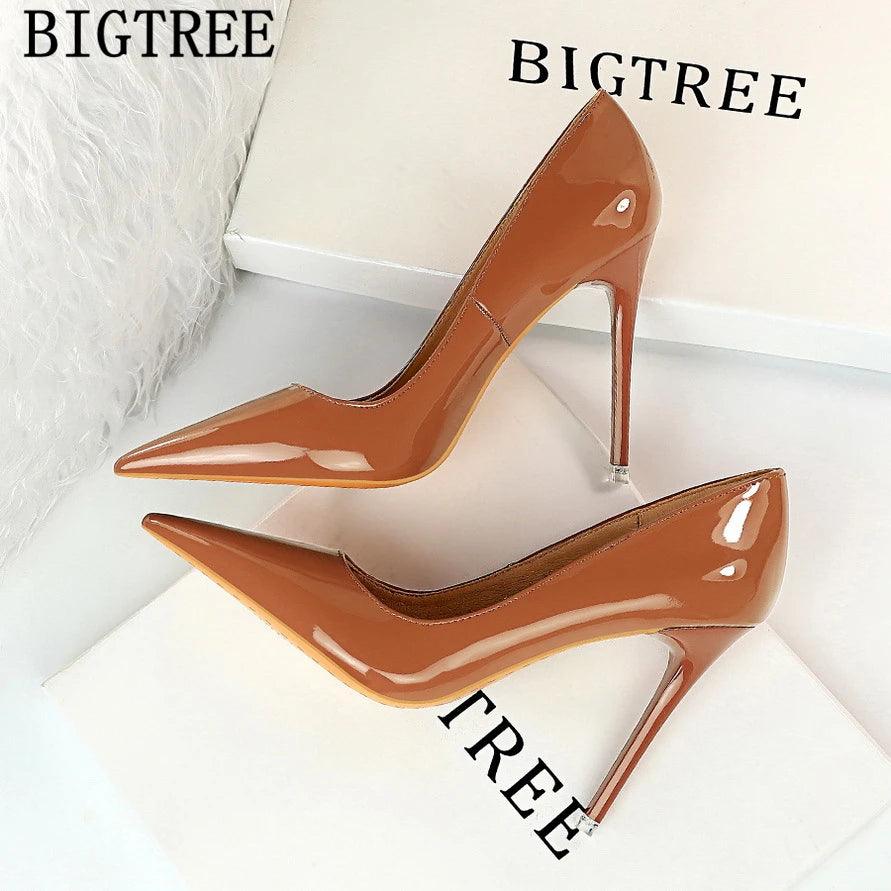 Brand Name: BIGTREEPump Type: BasicHeel Type: Thin HeelsOrigin: CN(Origin)Upper Material: Patent LeatherToe Shape: Pointed ToeWith Platforms: NoHeel Height: Super High... Read more