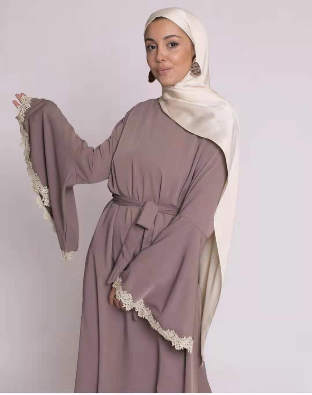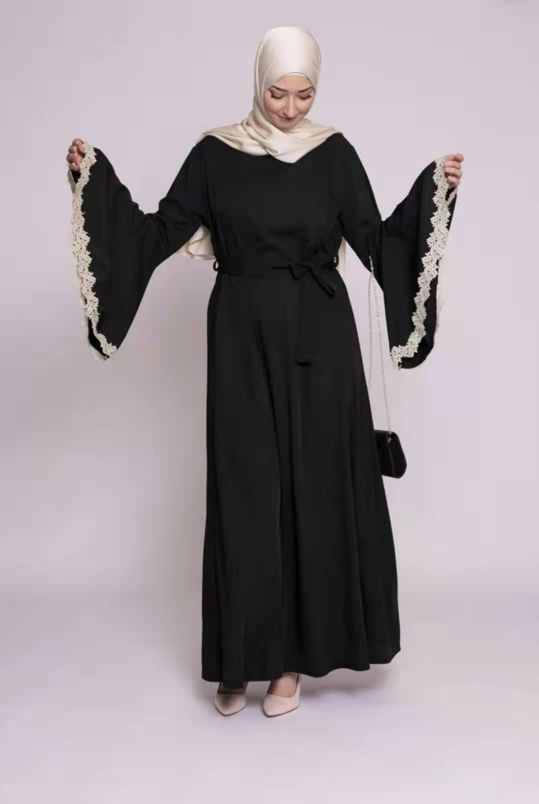 Factory direct supply Yiduoduo European and American fashion splicing lace dress trumpet sleeve temperament loose long skirt 21668