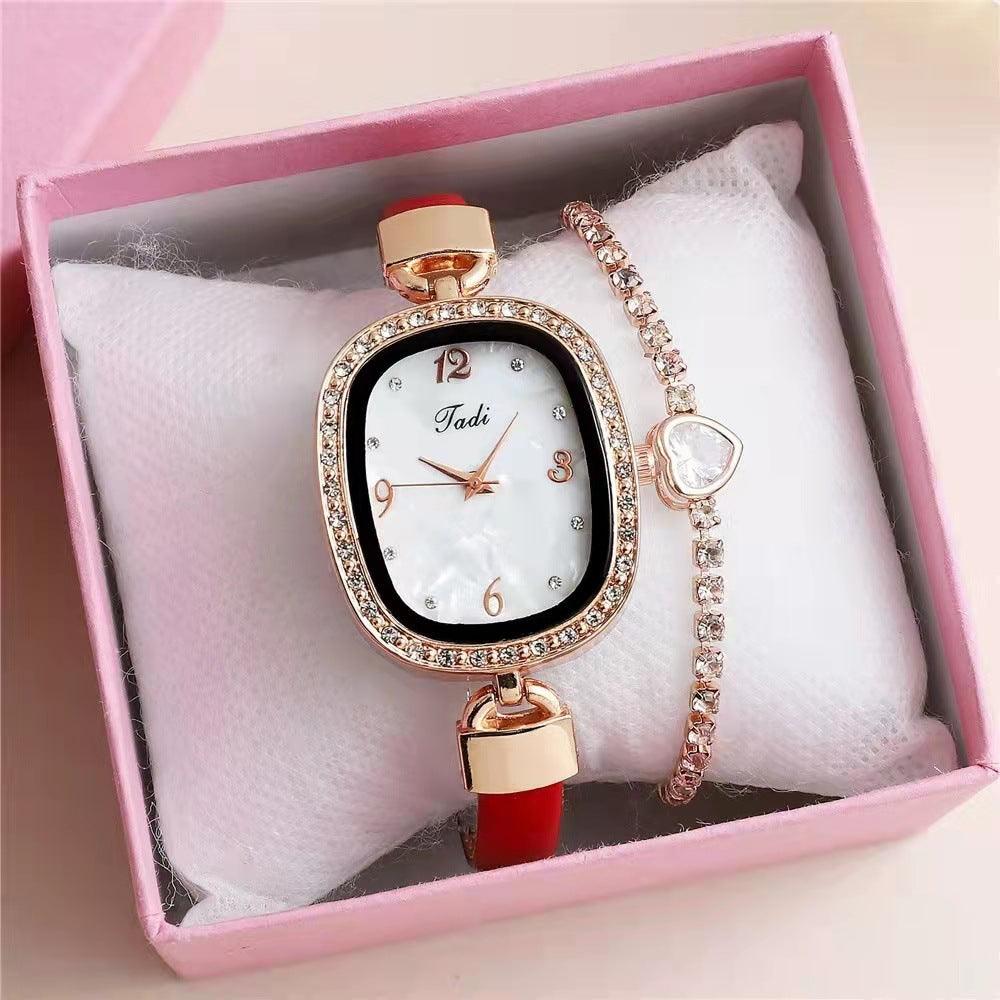Fashion Belt Marbling Rhinestone Women's Quartz Watch Bracelet Set