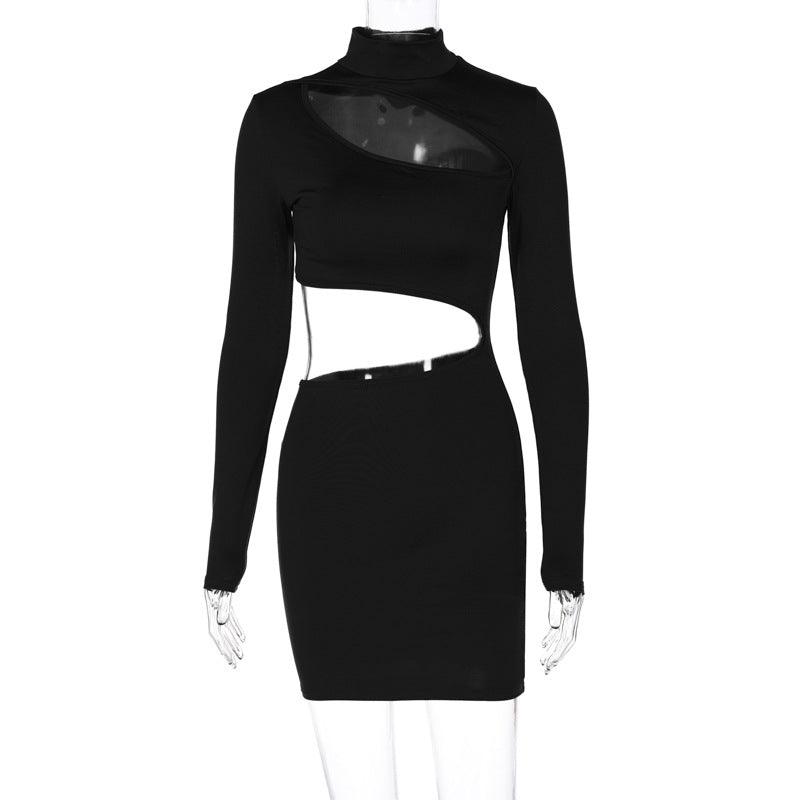 Fashion Cutout Slim Fit Turtleneck Long Sleeve Dress