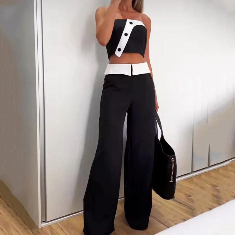 Fashion Hot Girl Vest High Waist Wide Leg Pants Color Matching Suit