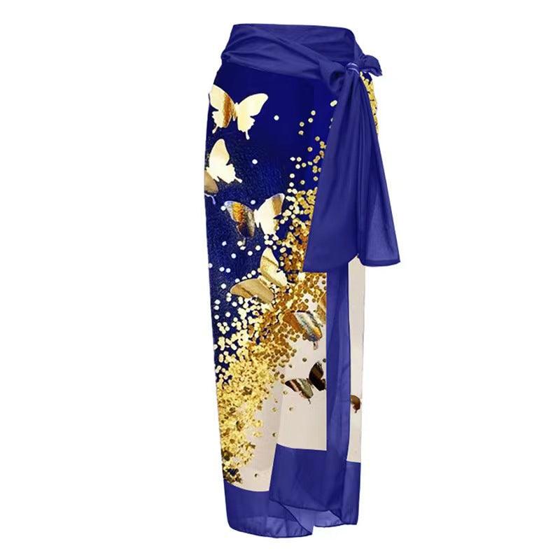 Product information:Pattern: Printing Color: royal blue suit, royal blue swimsuit, royal blue gauze skirt Size: S,M,L,XL, average size Lining composition:... Read more