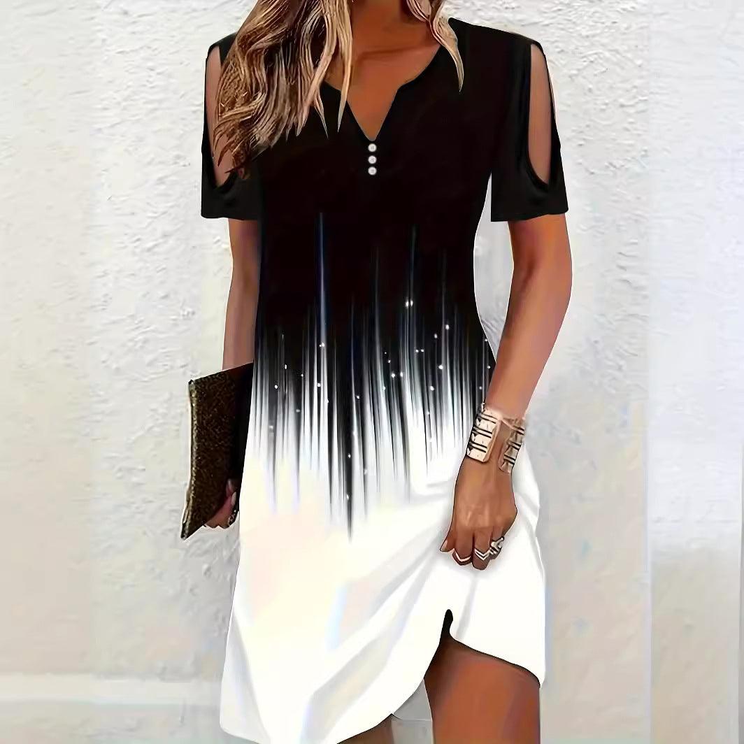 Fashion Round Neck Hollow Sleeve V-neck Dress
