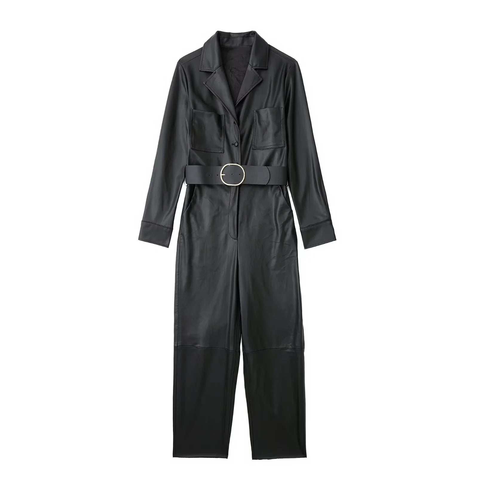 Product information:Fabric name: PU Color: Black Size: S,M,L,XSPants type: Straight type Style: Jumpsuit Style: Street style Size: Note: 1. Asian... Read more
