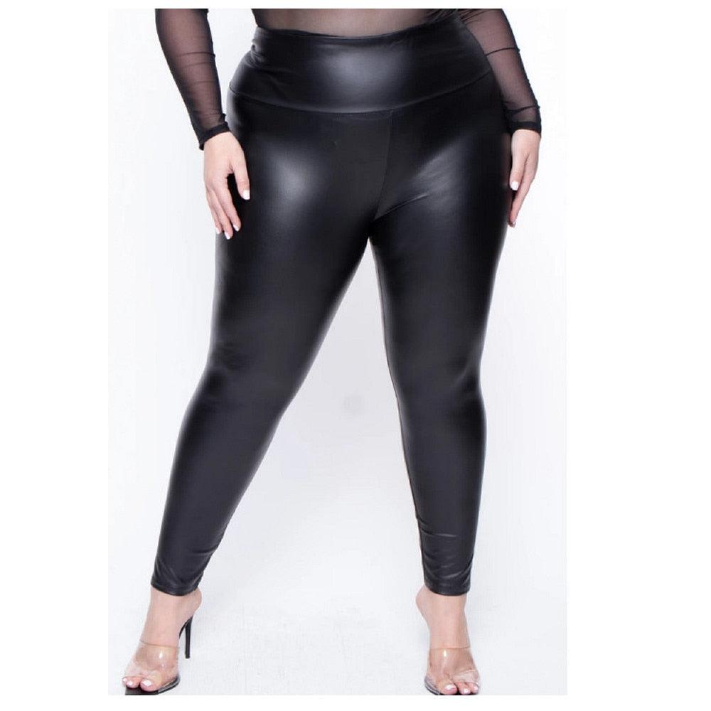 Faux Leather Leggings Plus Size Super Stretchy Spandex Clothing PU Leather Pant Tummy Control Oversized Pants ouc088
