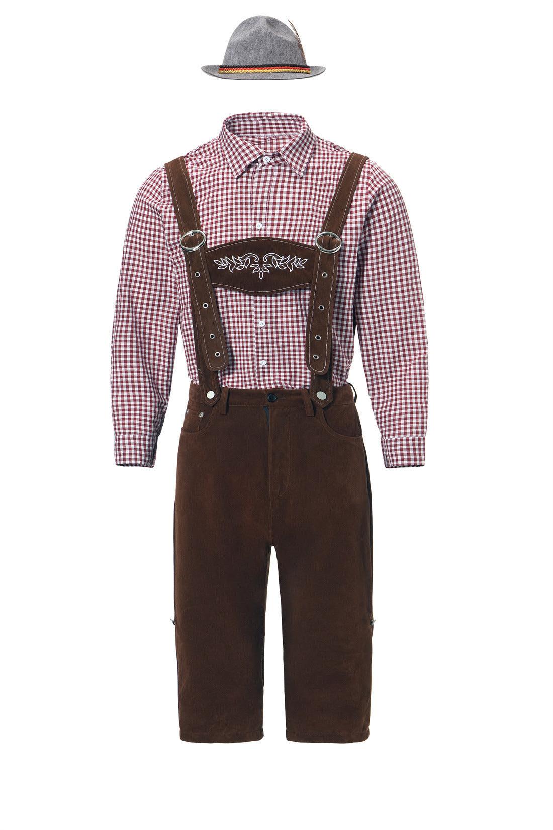 German Traditional Beer Festival Costume Halloween Plaid Shirt Men's Bib Hat Three-piece Suit Performance Wear