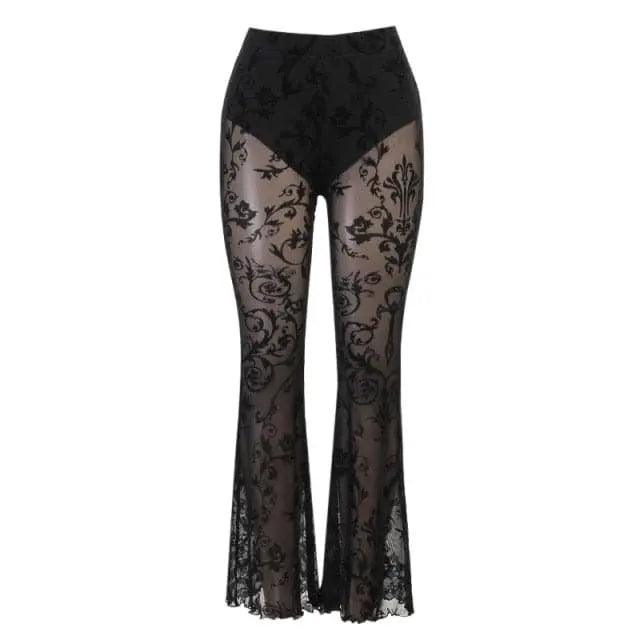 Style: GEMINI GOTHPant Style: Flare PantsMaterial: PolyesterMaterial: SpandexFit Type: RegularLength: Full LengthDecoration: Hollow OutWaist Type: HighPattern Type: PatchworkStyle: GothicFront-Style: FlatFabric... Read more