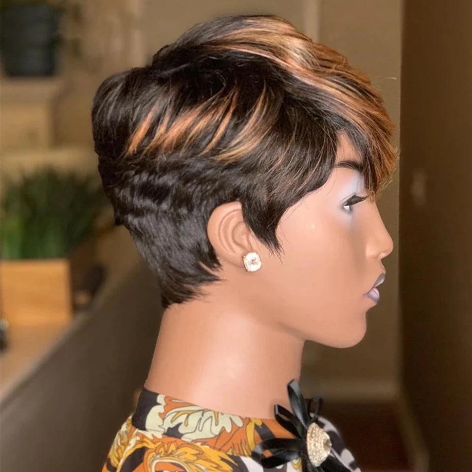 Highlight Wig Human Hair Honey Blonde Straight Bob Wig Ombre Colored Human Wigs With Bangs Full Machine Pixie Cut Wig For Women