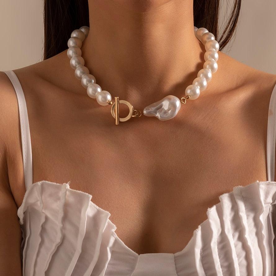 Ingemark Vintage Baroque Pearl Heart OT Buckle Pendant Necklace for Women Wedding Bridal Bead Chain Neck Accessories Jewelry New