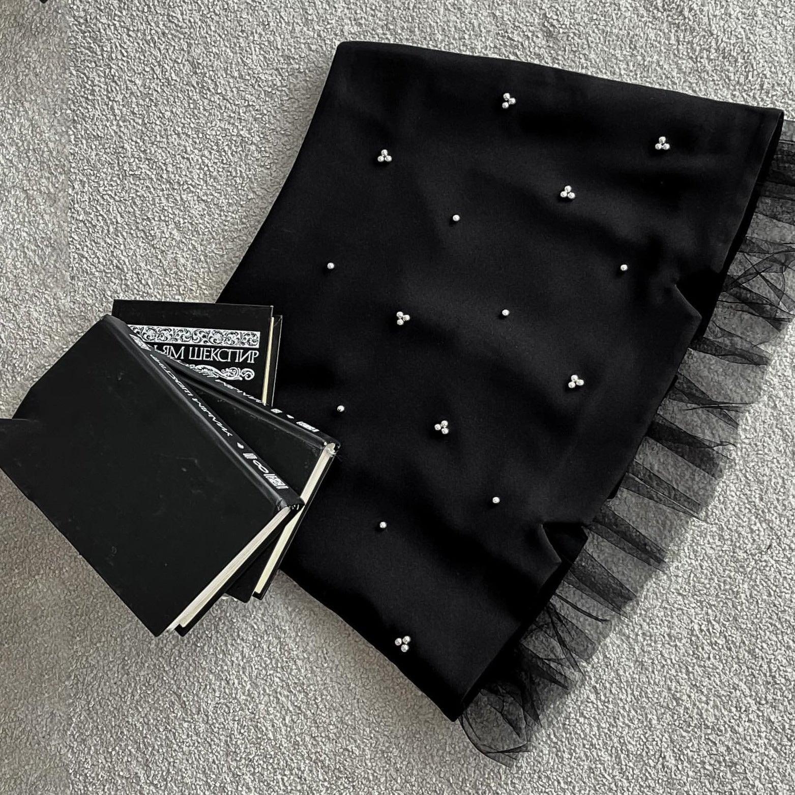 Ins High Waist Small Split Mesh Stitching Elegant Commuter Beaded Skirt