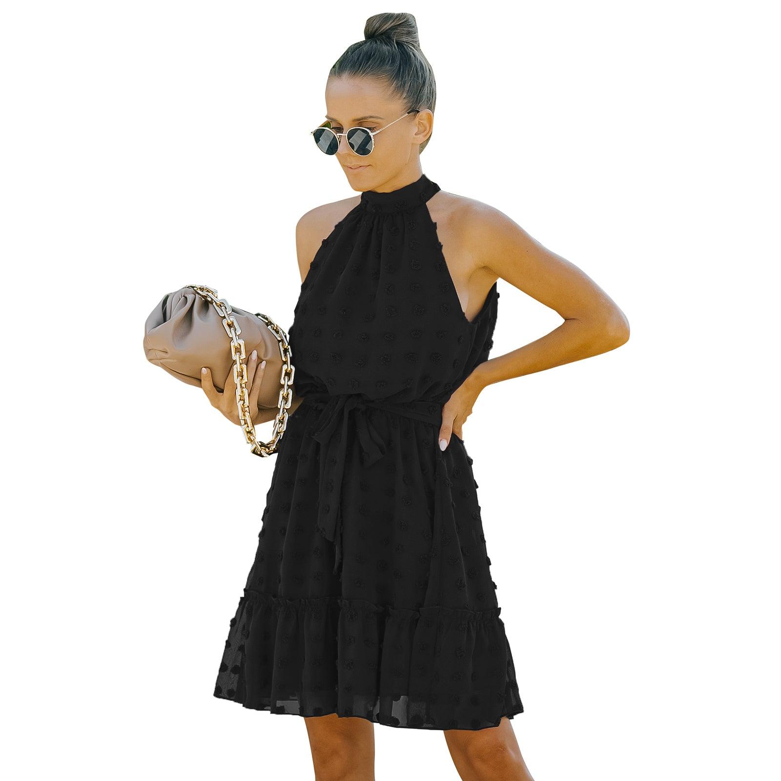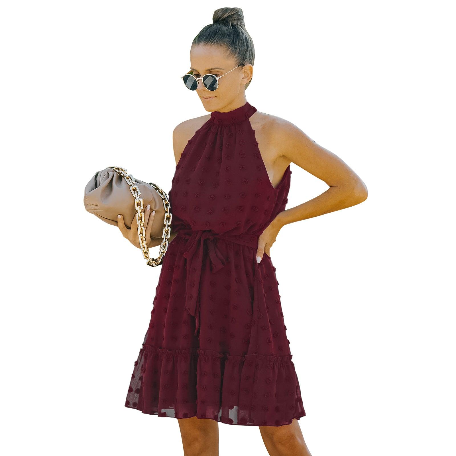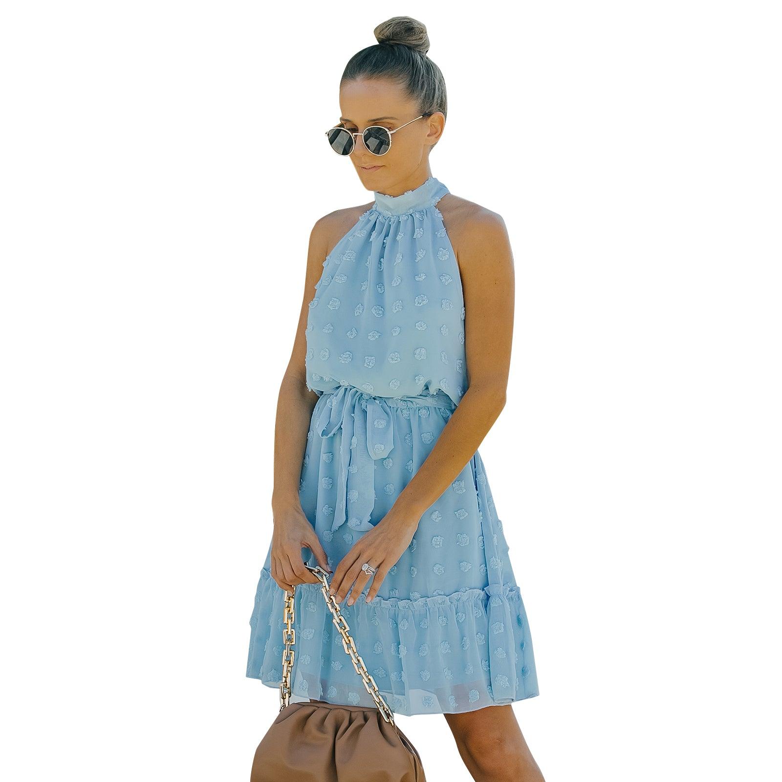 Jacquard Cutout Skirt Halterneck Chiffon Dress