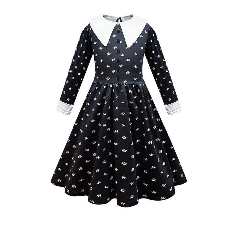 Kids Adults Disguise Wednesday Addams Cosplay Dress And Wig Bag Set Girls Halloween Costumes Carnival Gothic Birthday Clothing