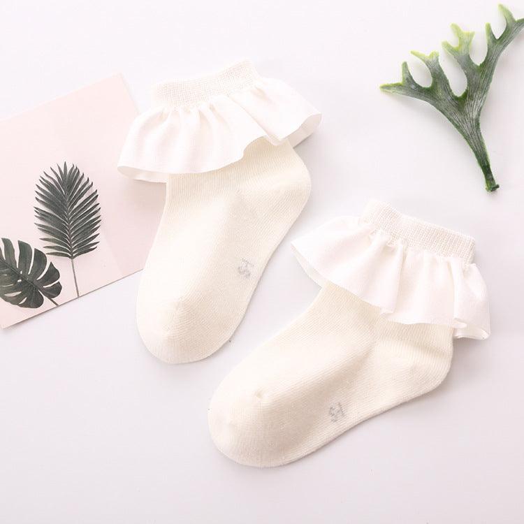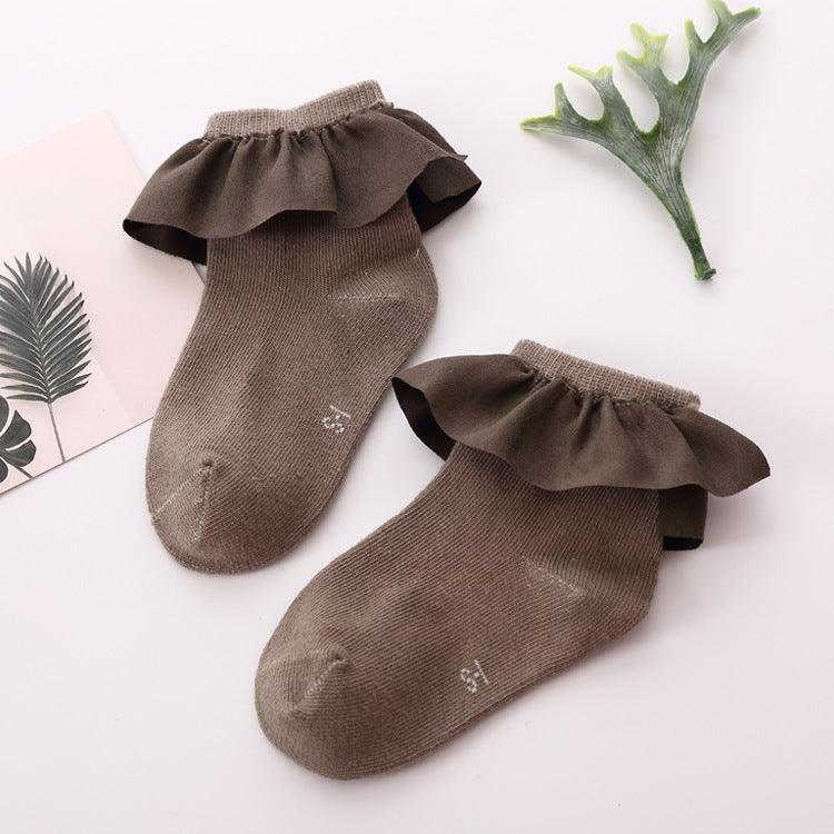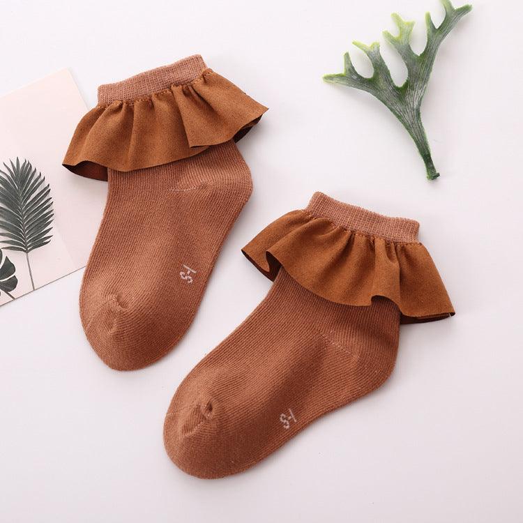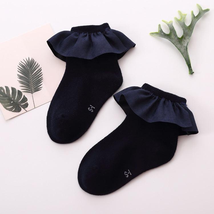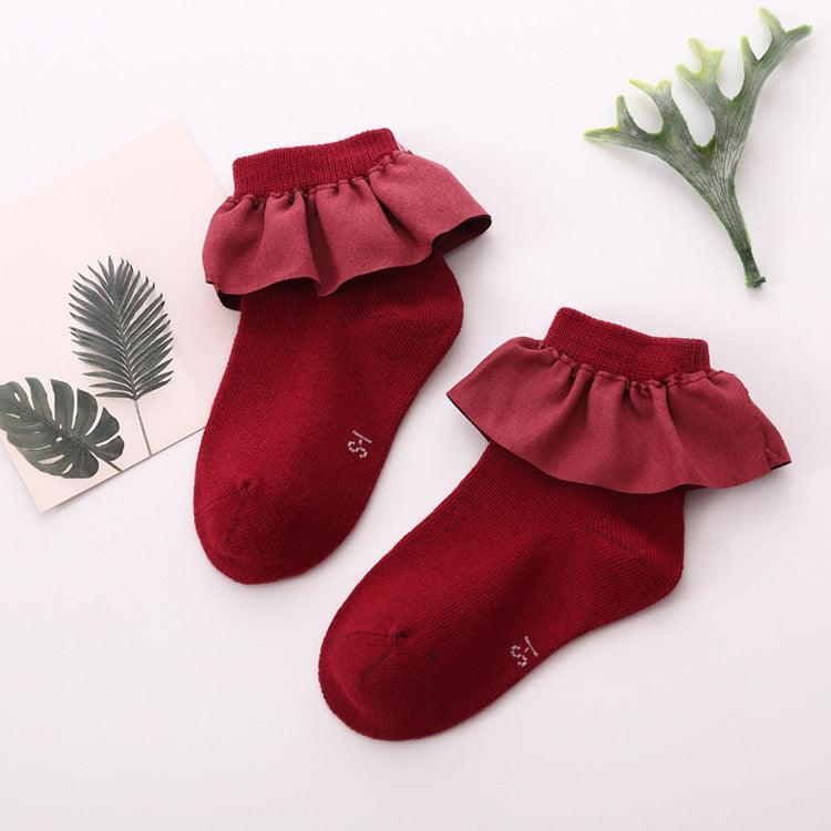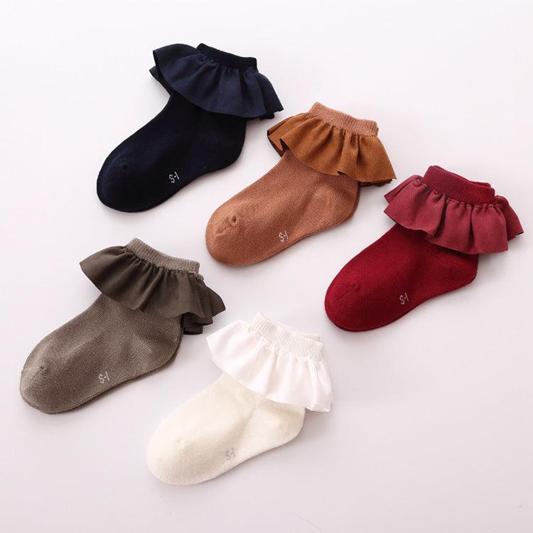 Korean single retro color girls flannel lace socks boneless hand-sewn princess cotton socks 2-4-6-8 years old
