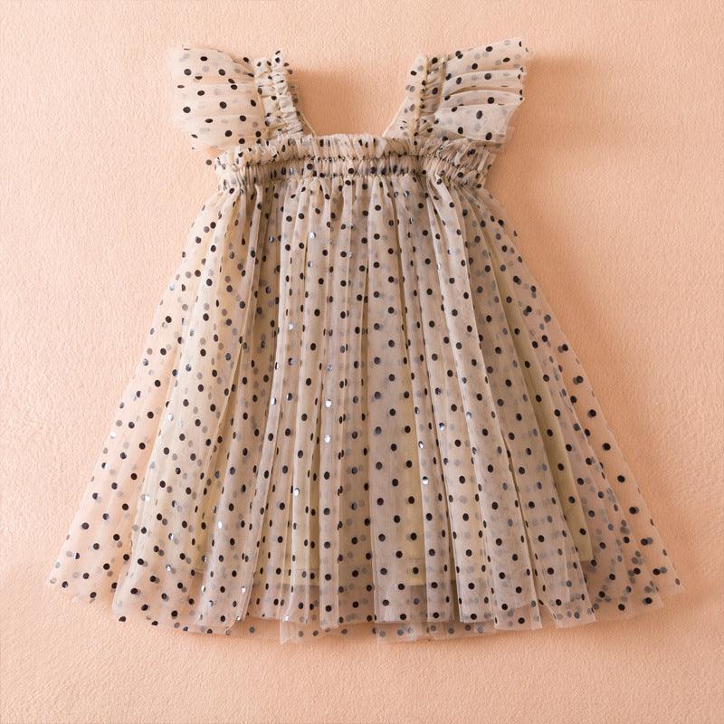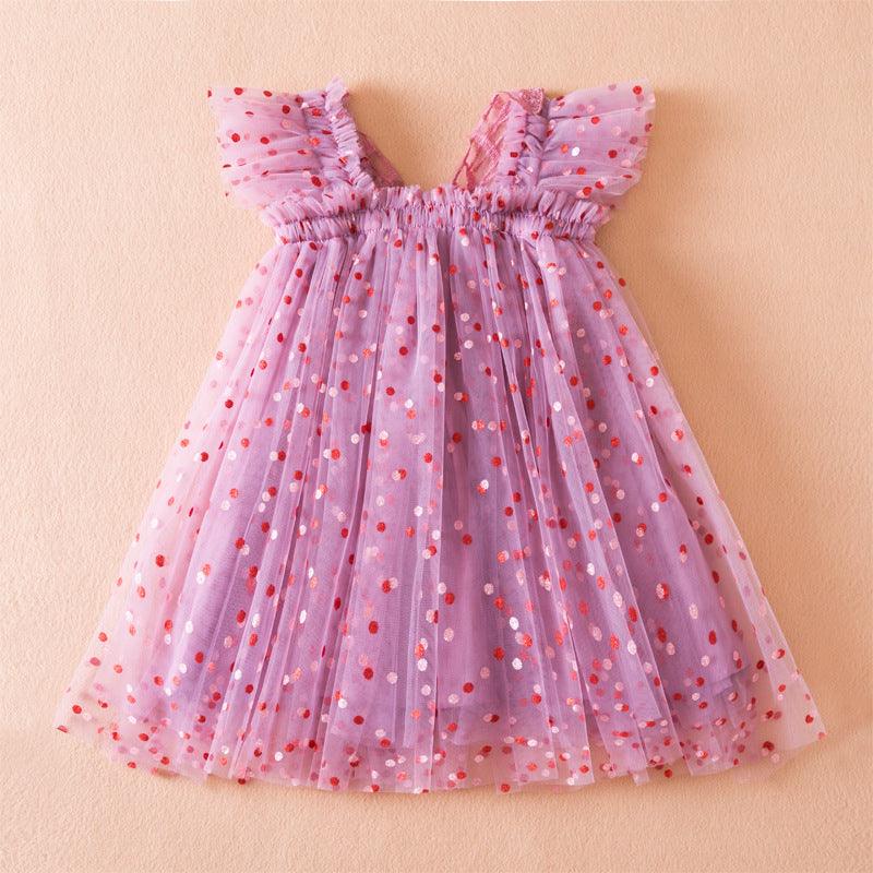 Korean Style Flounced Sleeve Dot Mesh Princess Dress