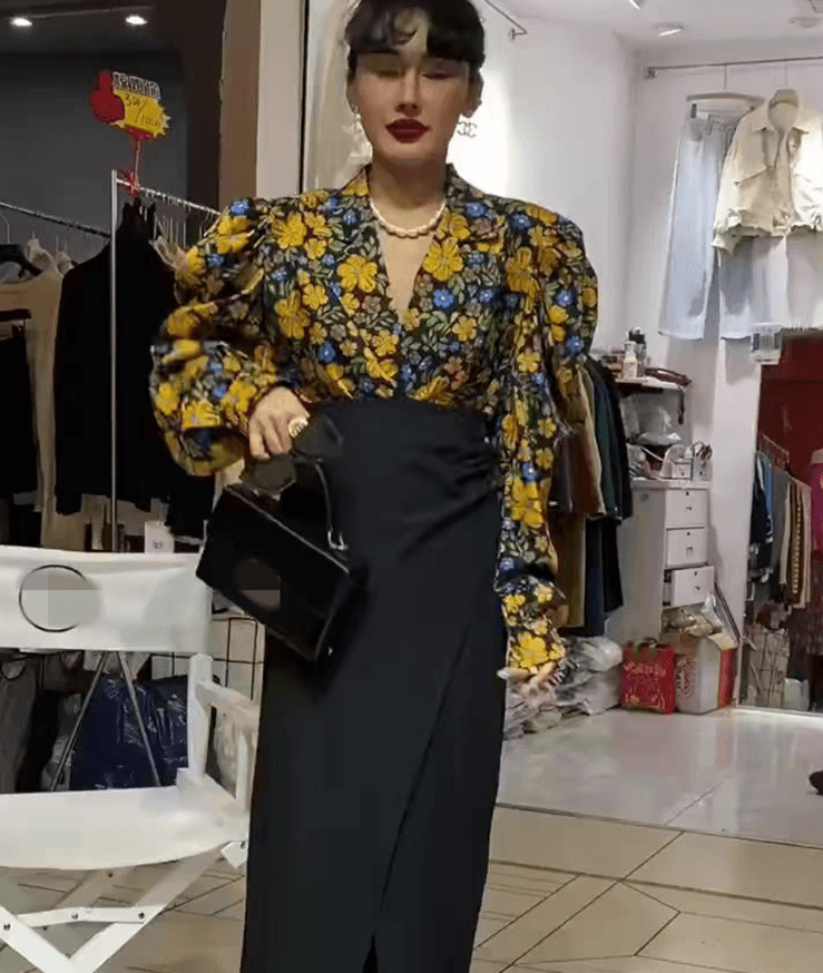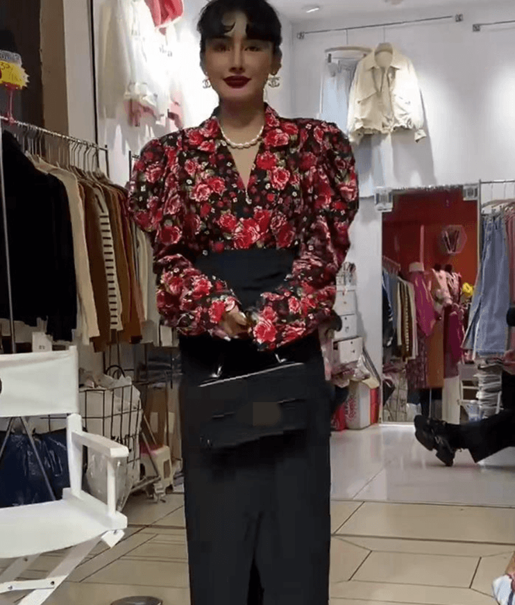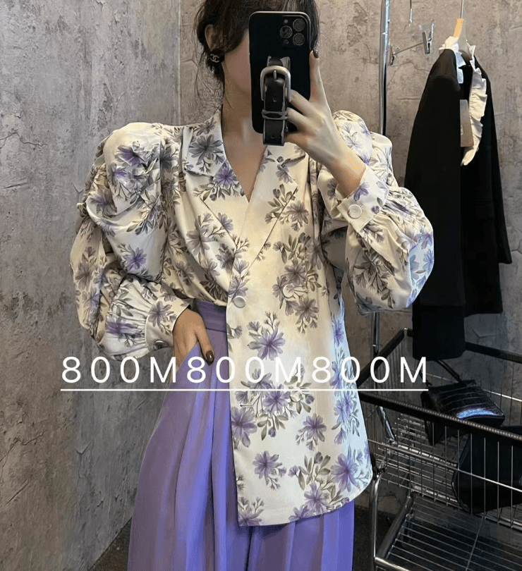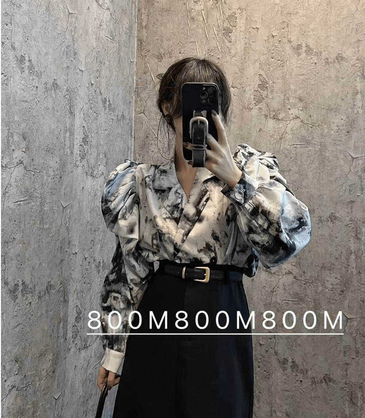 LANFUBEISI Elegant Print Puffed Sleeve Blouse Top Autumn Womens Turn-Down Collars Half Sleeve Tie Dye Blouses Shirt Outwears