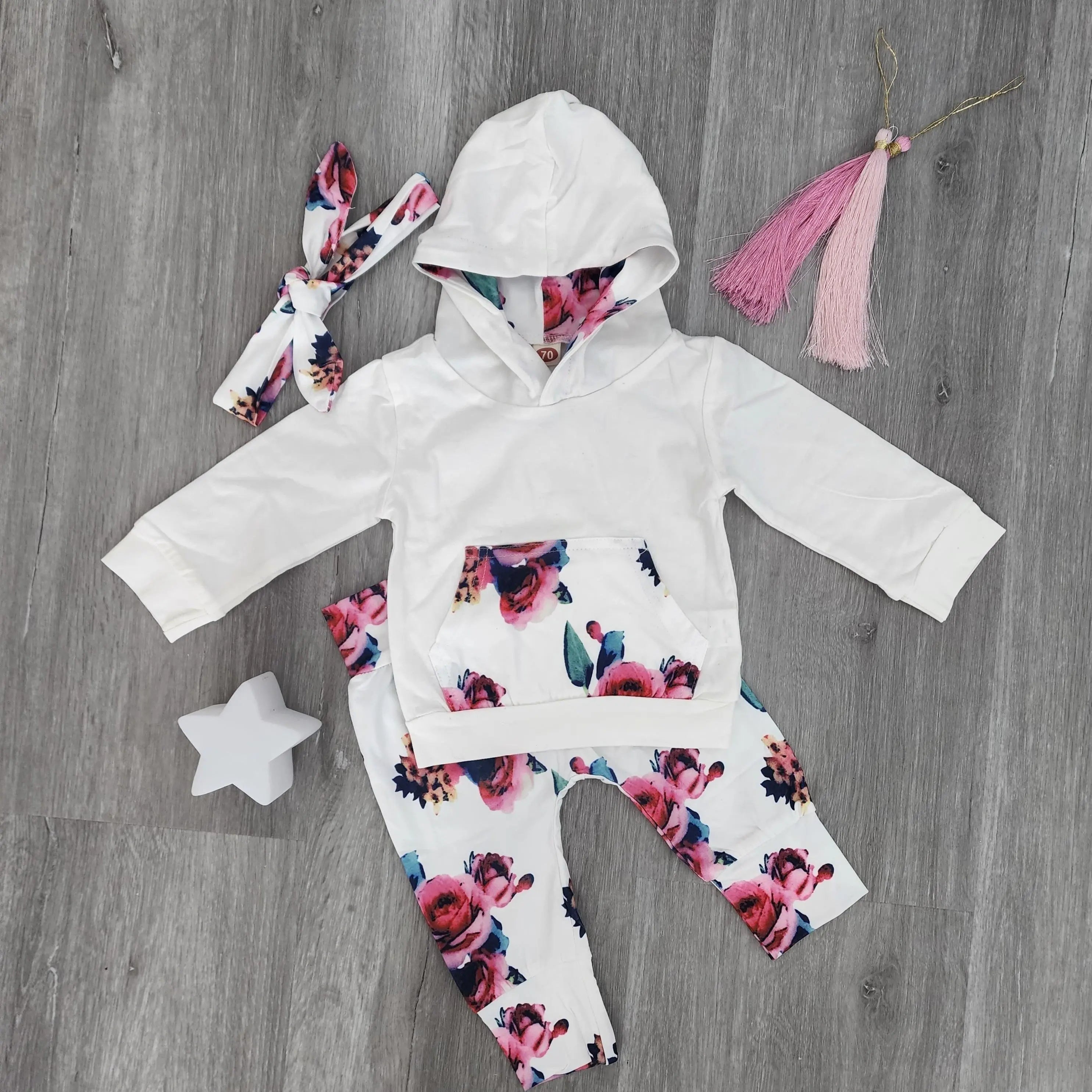 A soft floral touch for a warm tracksuit.Material: Cotton and SpandexIncludes: 3 Pieces - Headband, Top and pantsSeason: Autumn, Winter and...
