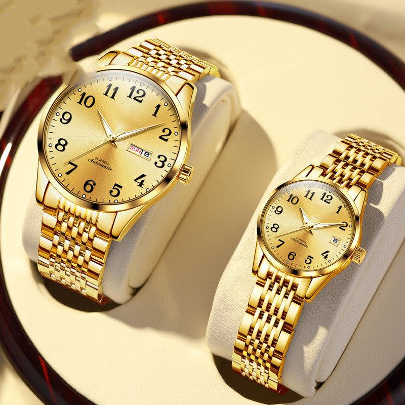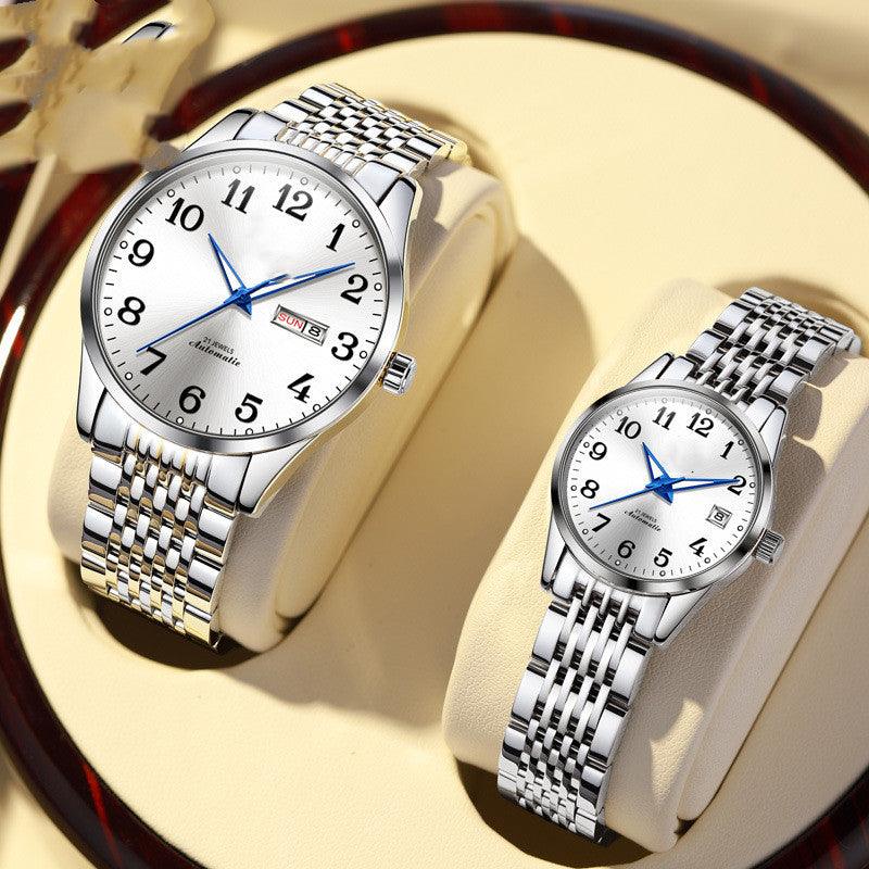 Product information:Movement: mechanical movementBracelet: steel braceletCase: alloy caseWater resistance: 30M life waterproofDiameter: male: 40mm, female: 27mmThickness: male: 12mm, female: 11mmPacking... Read more