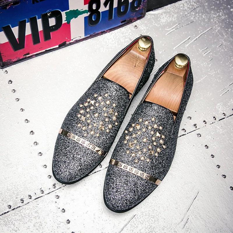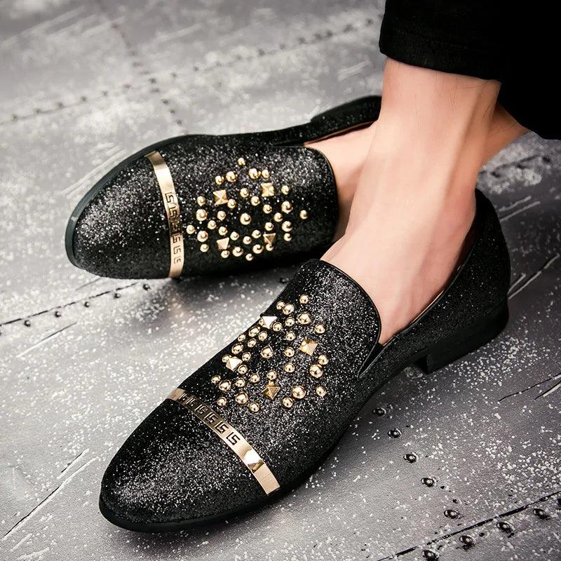 Introducing our Men's Diamond Rhinestones Loafers, where style meets comfort seamlessly. Crafted with precision and elegance, these shoes boast a unique design that incorporates diamond rhinestones for a touch of sophistication.