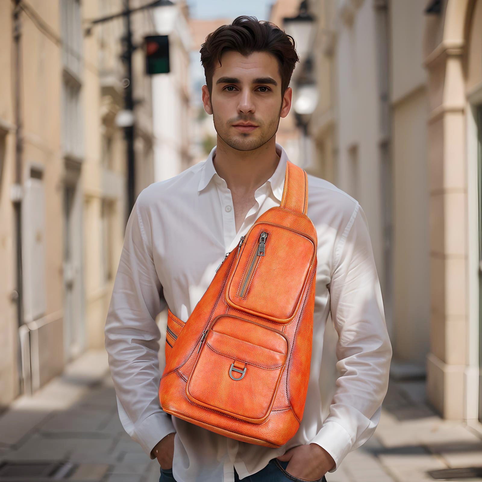 Men's First Layer Large Capacity Shoulder Messenger Bag Brushed Skeleton-skin
