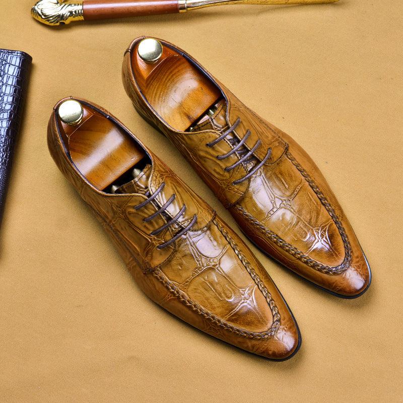 Men's Korean-style British Casual Alligator Pattern Leather Shoes