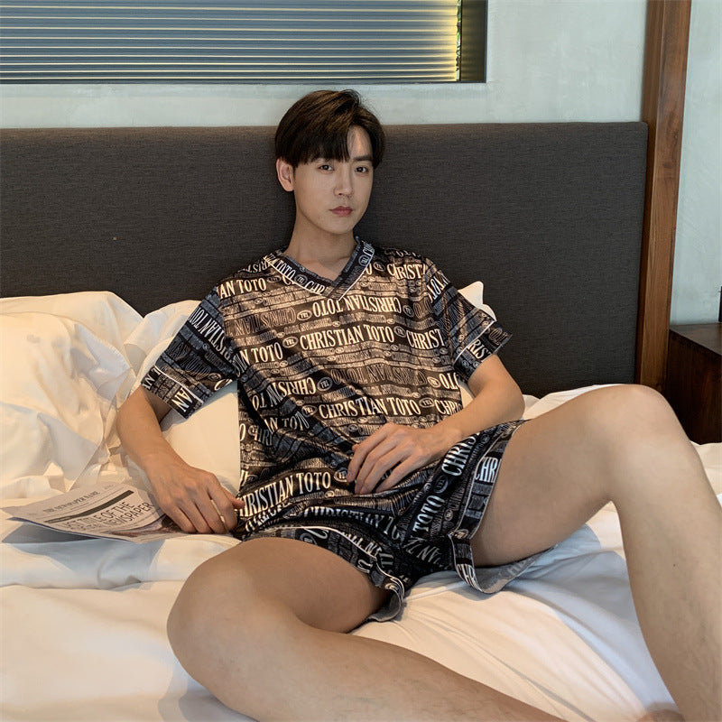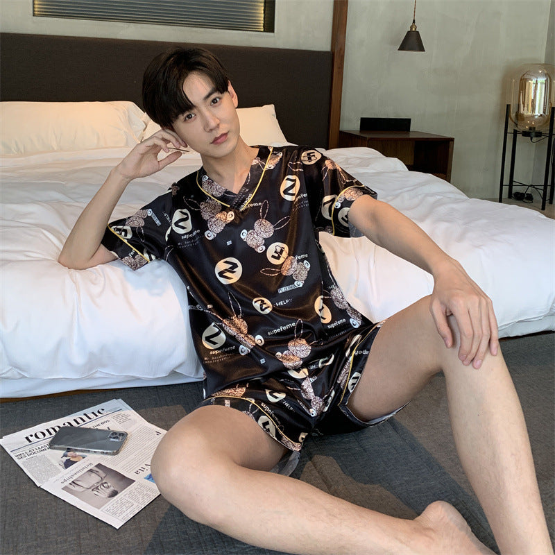 Men's Pajamas L-7XL Plus-sized Plus Size Summer V-neck Ice Silk Thin Fat Brother Loose Home Wear