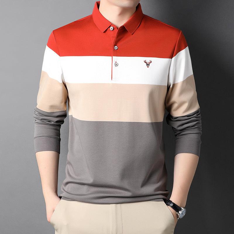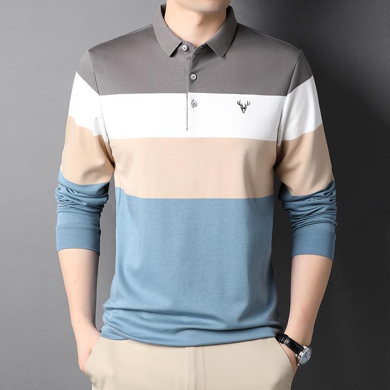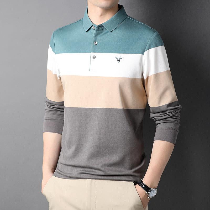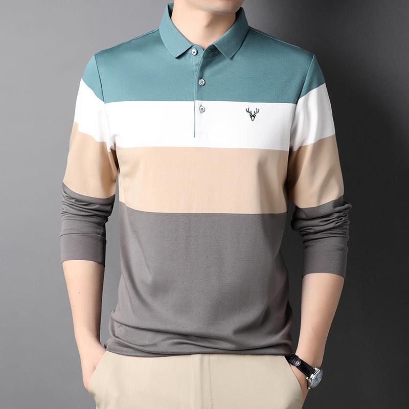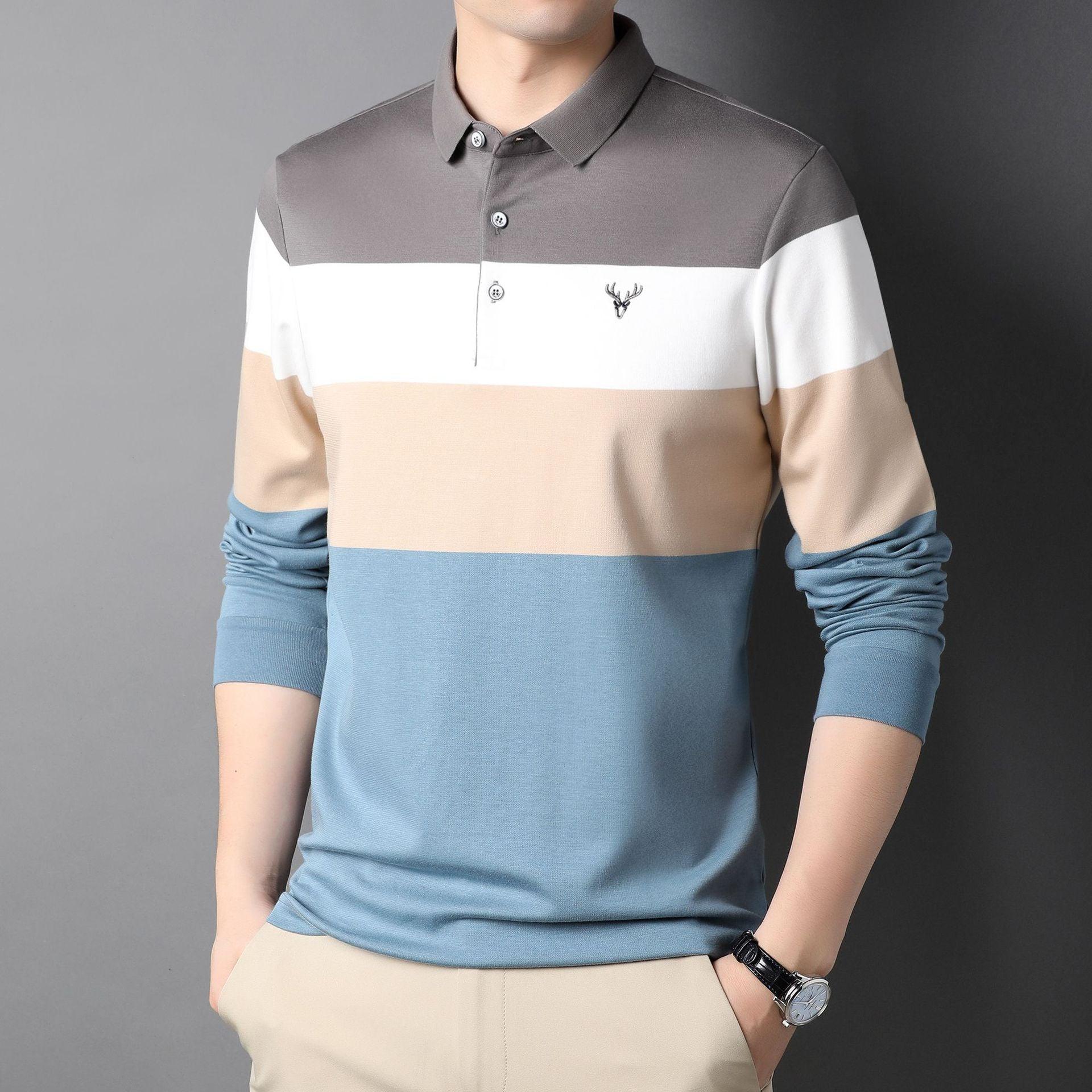 Men's polo shirt spring and autumn youth Korean cotton long sleeve T-shirt men's fashion casual loose striped men's clothing tide