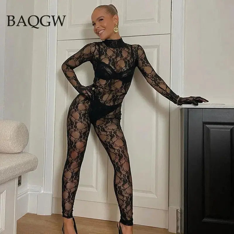 Mesh Sheer Hollow Out Long Sleeve Sexy See Through Skinny Outfit