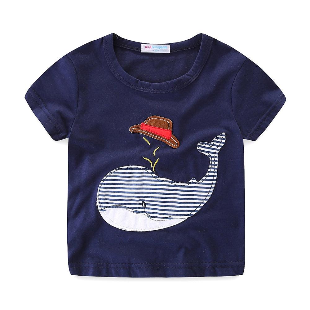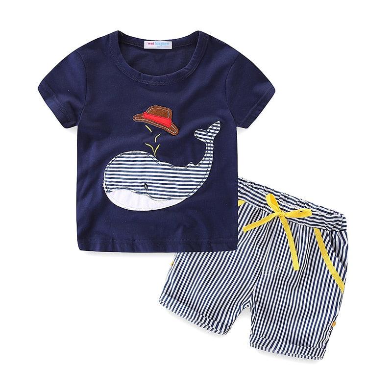 Cute Cartoon Whale Pattern T-Shirts and Striped Summer Shorts Set for Kids
