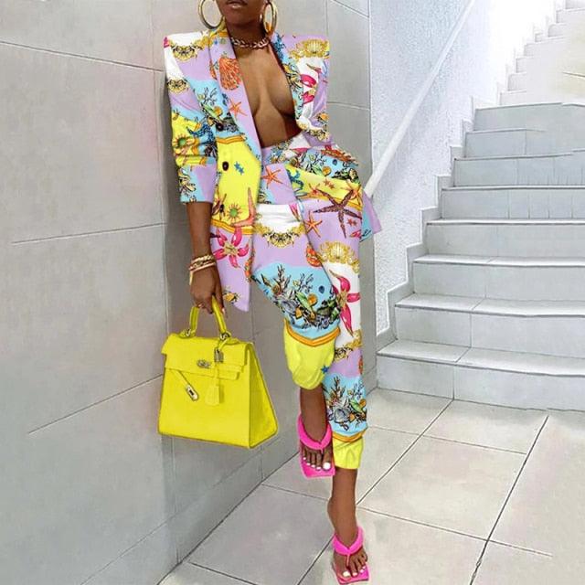 New Arrival Women Blazer Coat +pants Set Two Piece Autumn Winter Office Jacket Suit Female Fashion OL Pant Formal Set Streetwear